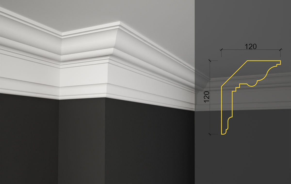 The Q‑27 Cornice by Wall Deco is a gypsum ceiling profile with decorative relief, bringing elegance, balance, and refined aesthetics to any interior. The central decorative motif features a combination of gentle convex and concave curves, creating soft transitions along the profile. This rhythmic relief emphasizes ceiling architecture and frames the room with a harmonious decorative accent. The upper edge of the cornice forms a precise line, sitting flush against the ceiling and creating a clean boundary between the ceiling and walls. The lower edge transitions gently to the wall, maintaining a unified design and smooth decorative flow. This profile suits both classic and modern interiors, from traditional elegance to minimalist spaces. Beyond its decorative role, the cornice effectively conceals ceiling-to-wall joints and minor surface imperfections, providing a neat and professional finish. Crafted from eco-friendly gypsum, the material is non-toxic, odorless, and safe for residential, commercial, and public spaces. The surface is fully paint-ready, allowing effortless adaptation to any color palette or interior design. The cornice also features fire-resistance class A1, meaning it is fully non-combustible, ensuring safety in all environments.
