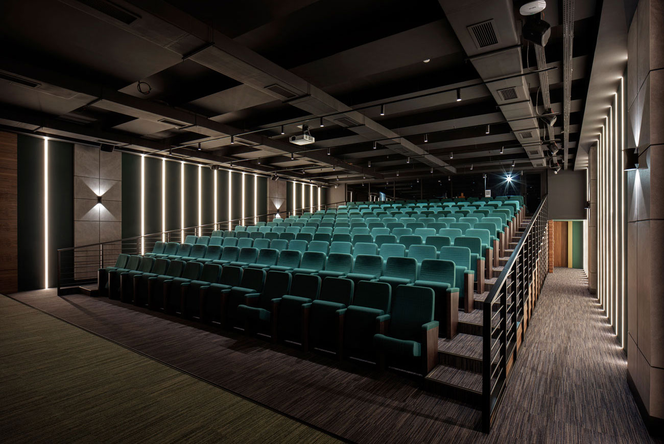 Հյուրերը տարածք են մտնում հսկայական ընդունարանով, որի ձախ կողմում մանկական սենյակն է, աջում՝ հանդիսասրահը՝ Auditorium: Այստեղ անցկացվում են գիտաժողովներ, դասախոսություններ, ցուցադրություններ։