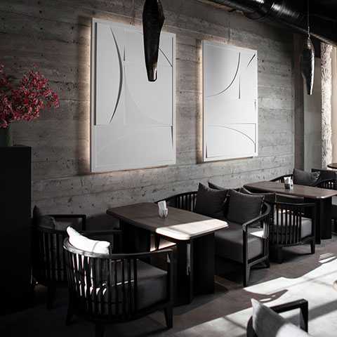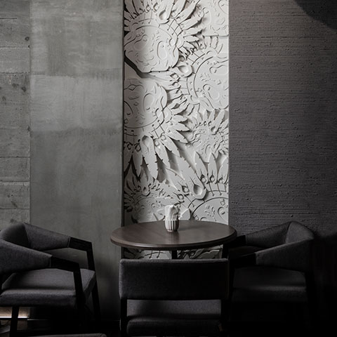 Дизайнеры хотели сохранить минималистичный стиль и добавить белые акценты, чтобы сделать интерьер светлее. Сотрудничество с компанией Wall Deco воплотило их идеи. Индивидуальным заказом было изготовление барельефов в виде логотипа Panda. Благодаря белому цвету и свету интерьер засветился!